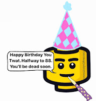 So my captor is 44 today, halfway to 88. On this special day I wish him nothing but pain and pestilence. And male pattern baldness. And a goose attack. In the dark. On the upside he’ll be dead soon. And bald. Being plastic I am of course immortal to all intents a purposes. Now piss off, I’m cooking sardines on toast.